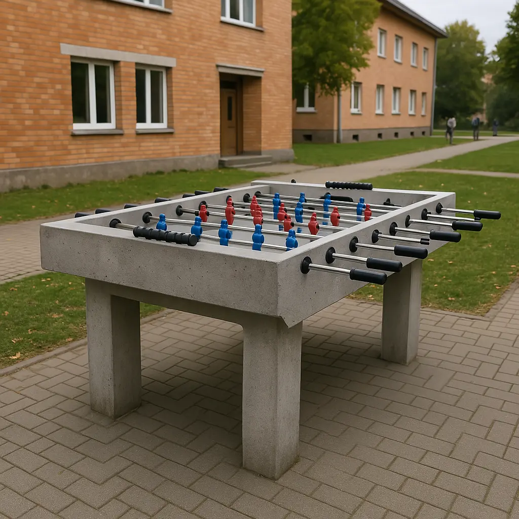 Nasze piłkarzyki betonowe to idealne połączenie trwałości, funkcjonalności i dobrej zabawy. Zaprojektowane z myślą o przestrzeniach publicznych, takich jak parki, boiska, osiedla mieszkaniowe, szkoły i strefy rekreacyjne, stanowią doskonałe uzupełnienie infrastruktury miejskiej.